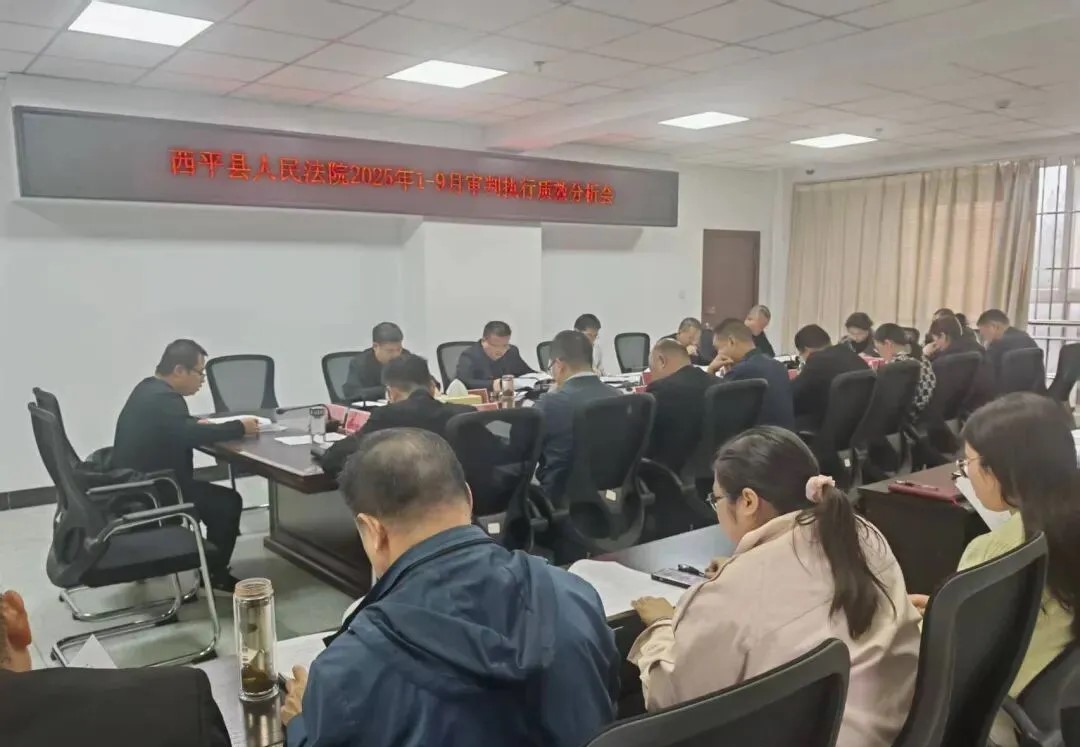 为精准研判审执工作态势,找准问题,确保圆满完成全年审判执行各项目标任务,10月11日下午,西平县人民法院召开1—9月审判执行质效分析会。院领导班子成员、各部门负责人、全体员额法官参加会议。