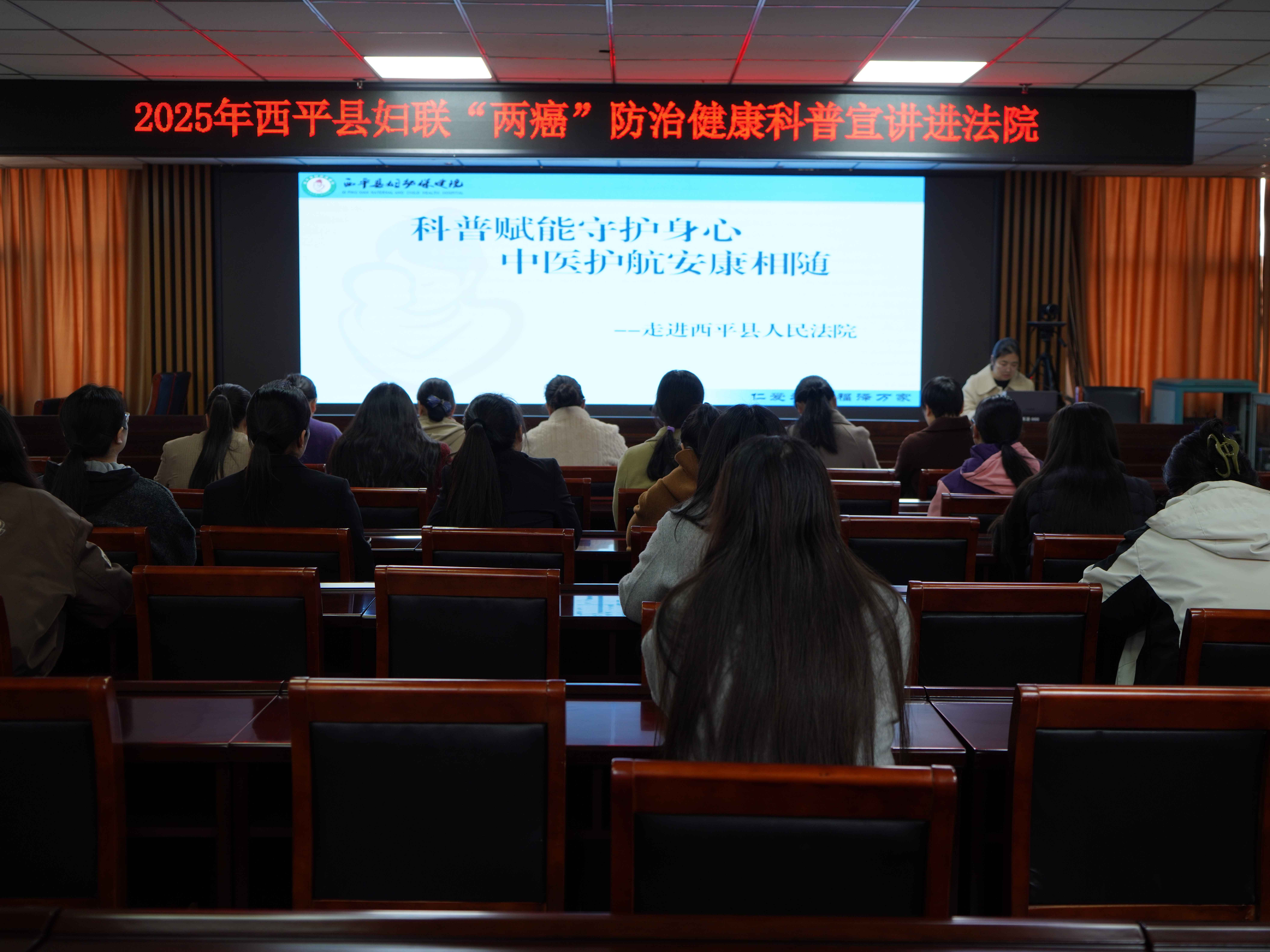 为进一步关爱干警身心健康,普及女性健康知识,帮助女干警建立预防疾病的科学理念,11月10日上午,由西平县妇女联合会、西平县卫生健康体育委员会联合举办,西平县妇幼保健院承办的“两癌”防治健康科普宣讲活动走进西平县人民法院。
