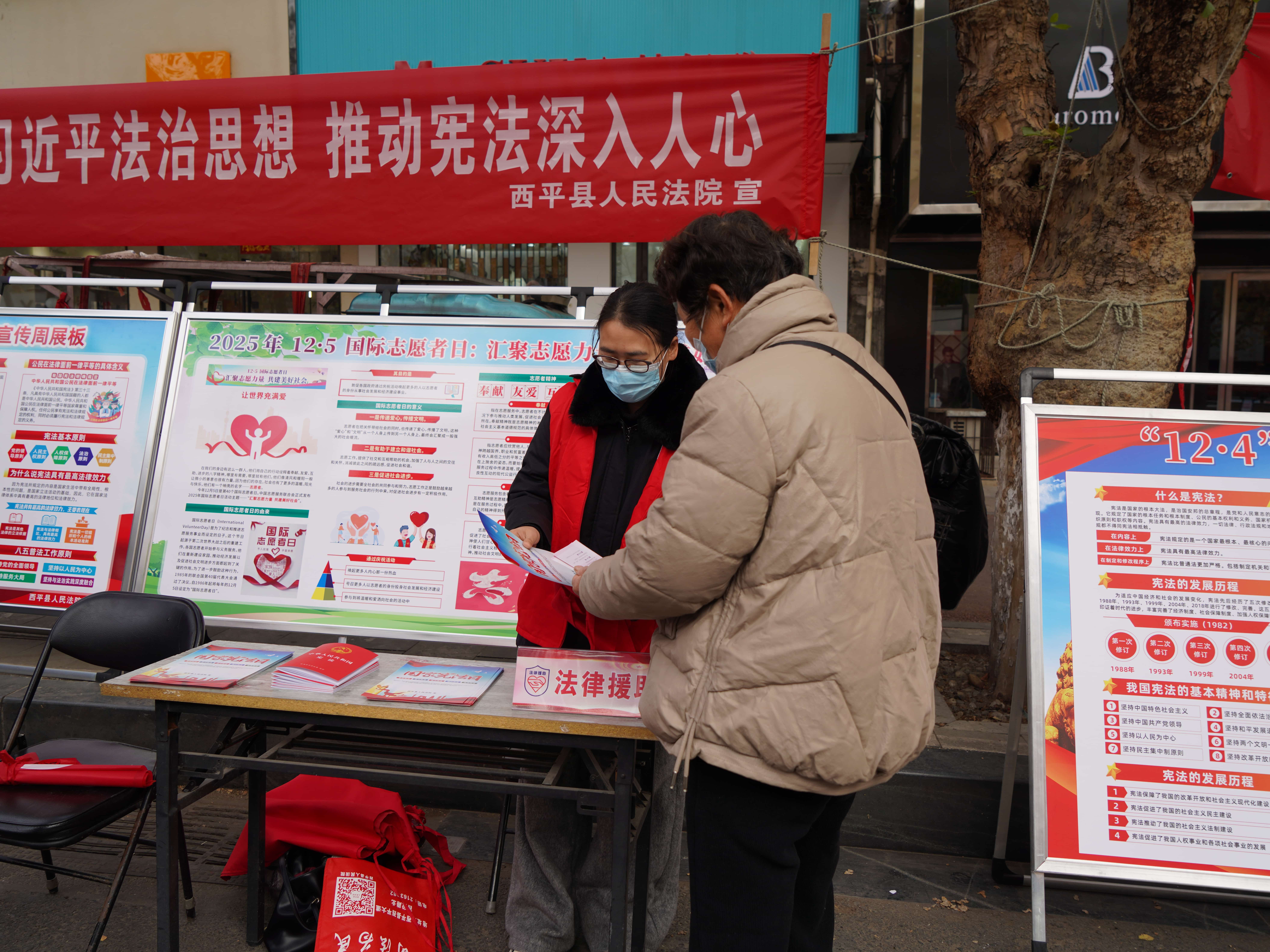 为深入学习贯彻党的二十届四中全会精神,全面践行习近平法治思想,切实增强全民宪法意识,12月4日,西平县人民法院以“学习宣传贯彻习近平法治思想 推动宪法深入人心”为主题,精心组织开展了国家宪法日系列宣传活动,通过面对面普法宣传,让宪法精神走进千家万户。