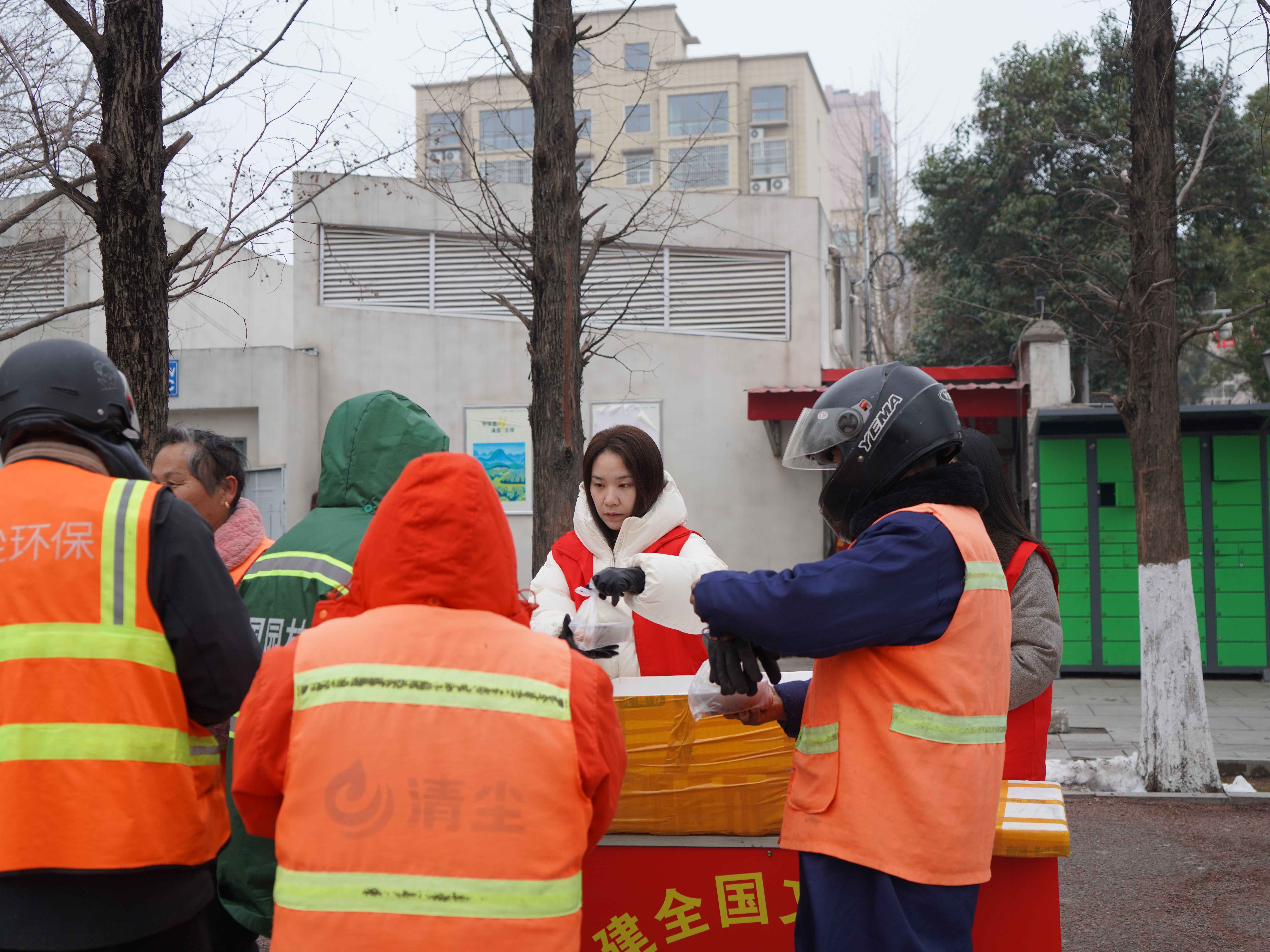 活动现场,志愿者们为环卫工人们准备了腊八粥、包子、鸡蛋等暖心餐品,并为他们送去了节日的祝福,感谢他们为维护城市整洁付出的辛勤劳动和汗水,叮嘱他们要注意防寒保暖。“喝上一碗香甜可口的八宝粥,真是身暖心更暖。”环卫工人张阿姨开心地说道。