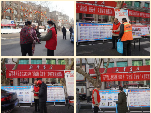 为增强群众法治意识,营造平安和谐社会环境,3月3日上午,西平县人民法院在柏城大道中段组织开展“讲政策 保安全”文明实践主题宣传活动,通过“零距离”普法、“面对面”答疑,将法律知识送到群众身边。