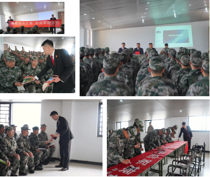 针对普遍关心的军人军属权益保障、涉军纠纷化解、涉军婚姻、个人信息保护等问题,法官助理赵旭生进行了“一对一”的耐心解答。同时重点介绍了法院涉军维权法庭的工作职能以及涉军绿色通道,帮助预定新兵掌握“遇事找法、办事依法、解决问题用法、化解矛盾靠法”的路径方法。活动最后,还向预定新兵赠送了法律书籍,全体预定新兵在印有“筑牢法治之基 开启军旅征程”的主题横幅上郑重签下自己的名字。一笔一划,签下的不仅是姓名,更是对依法服役、忠诚履职的庄严承诺。